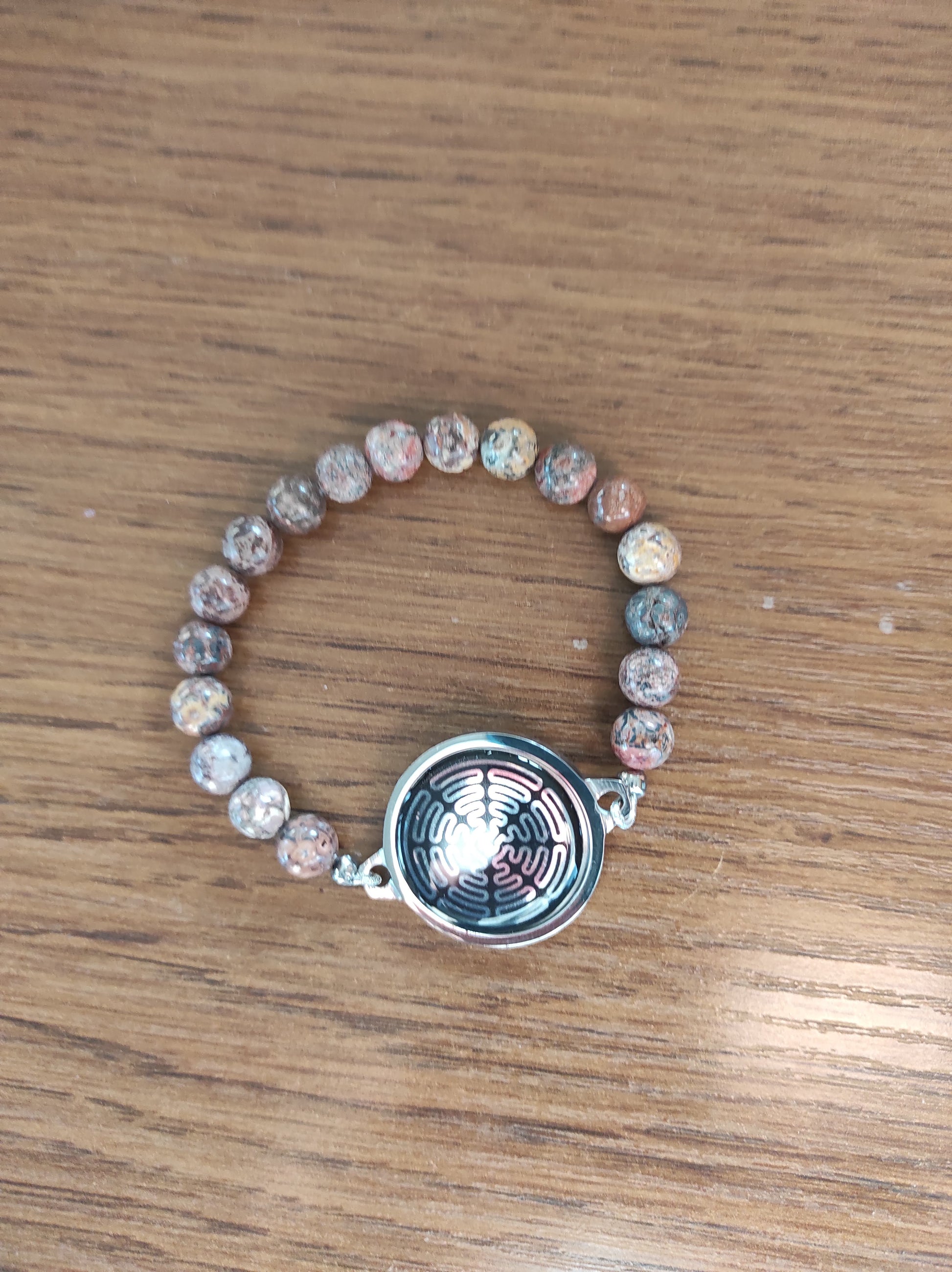 et des pierres naturelles de léopardite appelés aussi " pierre de santé".Ces pierres sont bonnes pour un réequilibrage émotionnel.